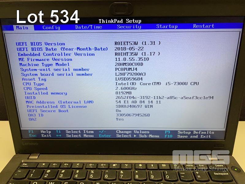 LAPTOP, LENOVO THINKPAD X270 (20HMS0CV0D), CORE i5 7300U (7TH GEN) @ 2.6GHz, 8GB DDR4 RAM, 256GB NVMe SSD, 12.5" WIDESCREEN (1366x768), INTEL HD VIDEO, Wi-Fi, BLUETOOTH, WINDOWS 10 PRO INSTALLED & POWER SUPPLY S/N:PC0PUMJ4