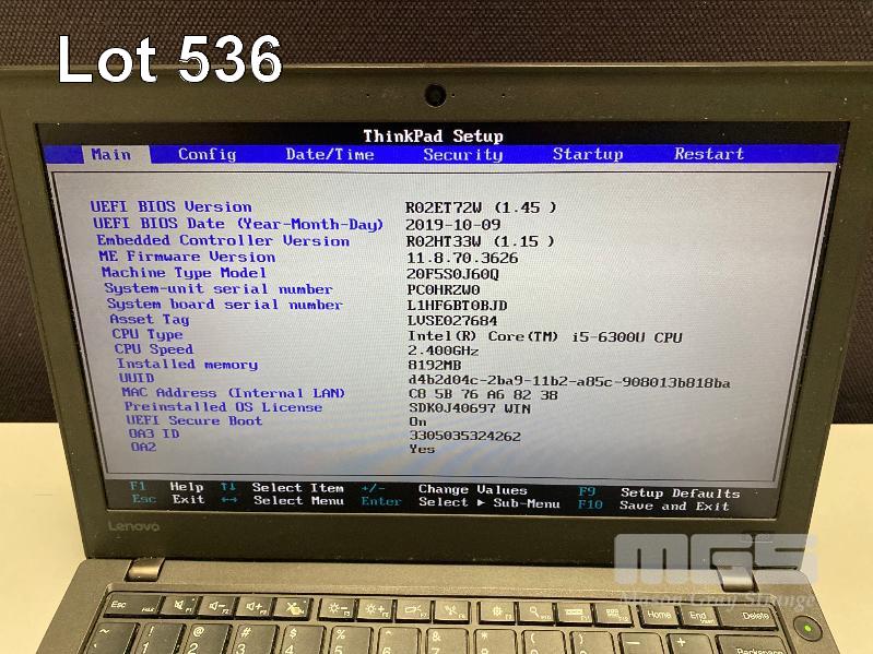 LAPTOP, LENOVO THINKPAD X260 (20F5S0J60Q), CORE i5 6300U (6TH GEN) @ 2.4GHz, 8GB DDR4 RAM, 525GB SSD, 12.5" WIDESCREEN (1366x768), INTEL HD VIDEO, Wi-Fi, BLUETOOTH, WINDOWS 10 PRO INSTALLED & POWER SUPPLY S/N:PC0HRZW0