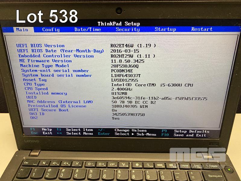 LAPTOP, LENOVO THINKPAD X260 (20F5S0J60Q), CORE i5 6300U (6TH GEN) @ 2.4GHz, 8GB DDR4 RAM, 500GB SATA HDD, 12.5" WIDESCREEN (1366x768), INTEL HD VIDEO, Wi-Fi, BLUETOOTH, WINDOWS 10 PRO INSTALLED & POWER SUPPLY (NOTE: MARKS ON SCREEN) S/N:PC0DN34E