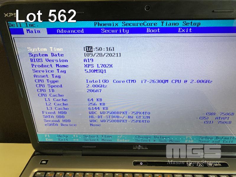 LAPTOP, DELL XPS 17 L702X, CORE i7 2630QM (@ND GEN) @ 2GHz, 6GB DDR3 RAM, 2 x 750GB SATA HDD, DVD-RW, 17.3" WIDESCREEN (1600x900), INTEL HD VIDEO, 3GB NVIDIA GEFORCE GT 555M VIDEO, Wi-Fi, WINDOWS 7 HOME PREMIUM INSTALLED W/ LICENSE & POWER SUPPLY S/N:5J0MSQ1