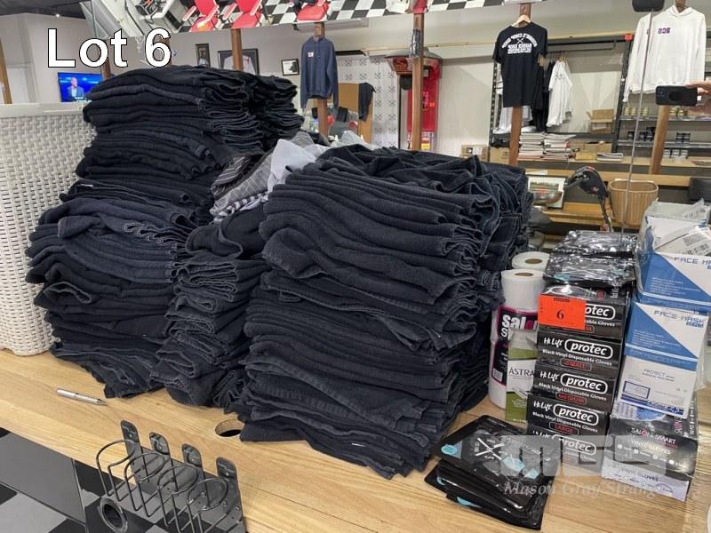 HUGE QUANTITY BLACK TOWELS, DISPOSABLE GLOVES & FACE MASKS