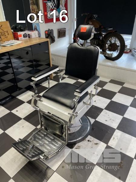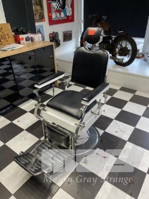 BARBERS CHAIR, MANUAL HYDRAULIC, BLACK & WHITE