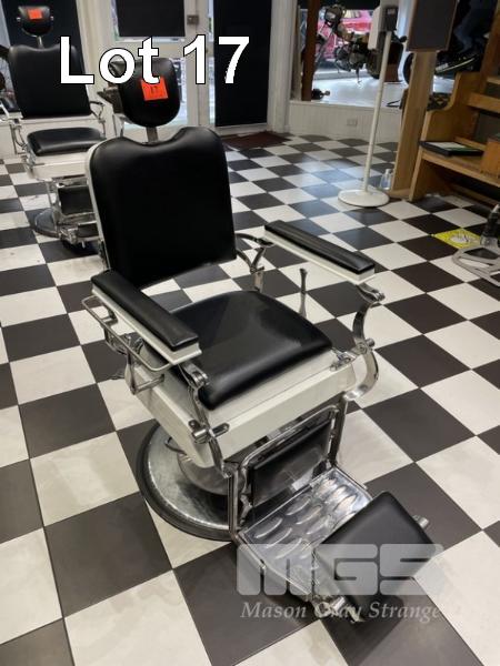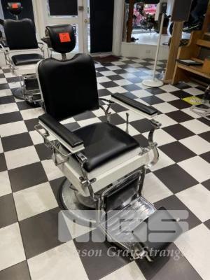 BARBERS CHAIR, MANUAL HYDRAULIC, BLACK & WHITE