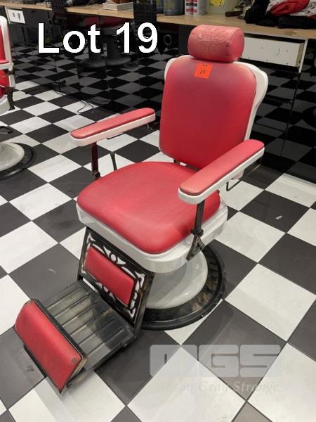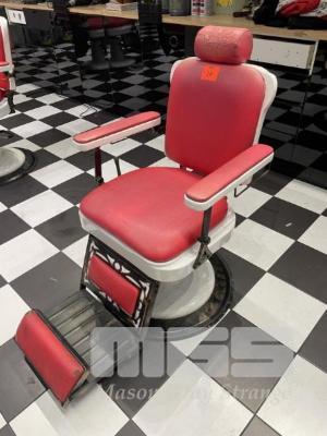 BARBERS CHAIR, MANUAL HYDRAULIC, RED & WHITE
