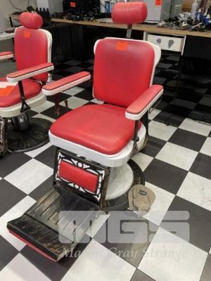 BARBERS CHAIR, MANUAL HYDRAULIC, RED & WHITE