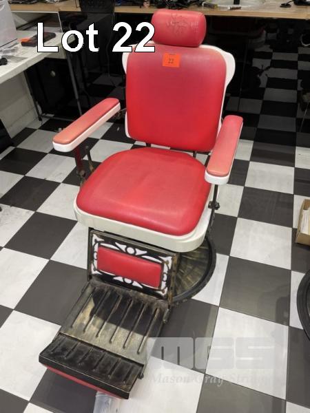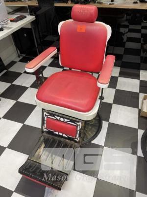 BARBERS CHAIR, MANUAL HYDRAULIC, RED & WHITE