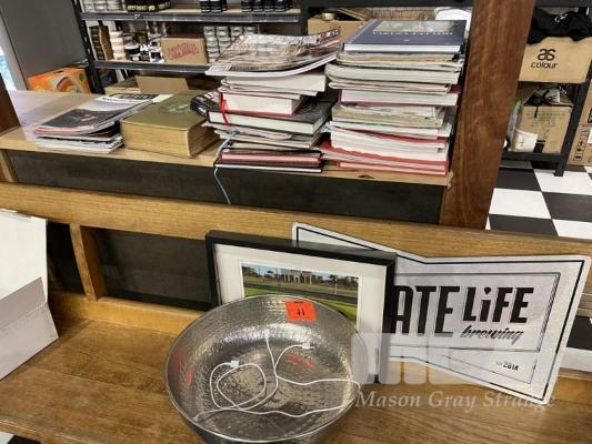 ASSORTED MOTORING BOOKS, MAGAZINES, PIRATE LIFE SIGN, BIBLE