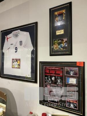 ENGLISH SOCCER GUERNSEY, "9" WAYNE ROONEY SIGNED, 2 x SCARFACE & SOPRANOS COLLECTABLE PRINTS
