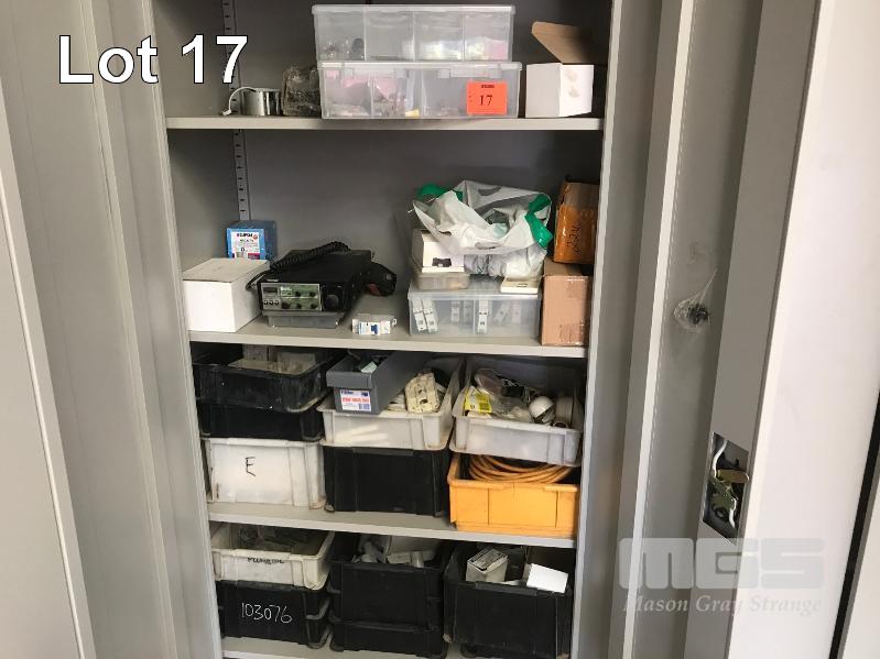 2 x PART ROLLS 3 CORE CABLE, DOUBLE OUTDOOR POWER OUTLETS, CABLE CLIPS, CABLE, SOCKETS, ETC (CONTENTS CABINET)