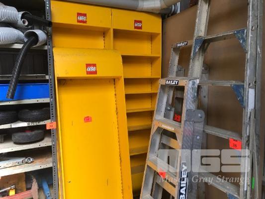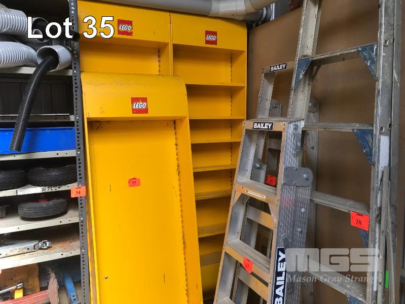 3 x YELLOW STEEL, WALL MOUNT LEGO DISPLAY SHELF UNITS