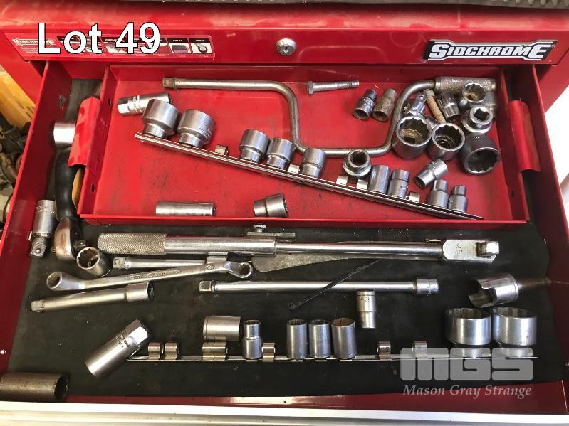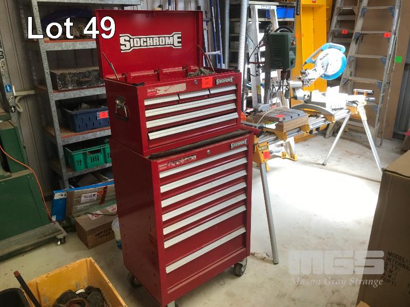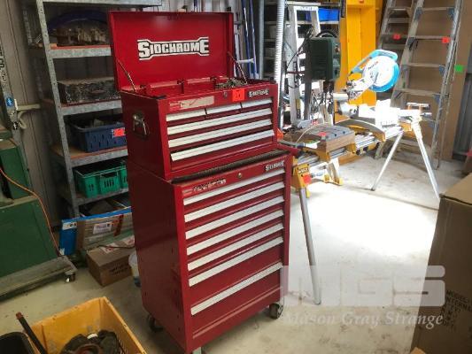 SIDCHROME MOBILE TOOL BOX CABINET, 7 DRAWER WITH 6 DRAWER TOOL BOX TOP, INC SIDCHROME SPANNERS & SOCKETS, TIN SNIPS, PLIERS, CRIMPING TOOLS, ETC