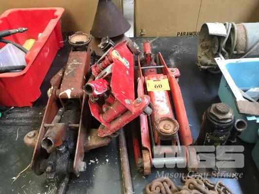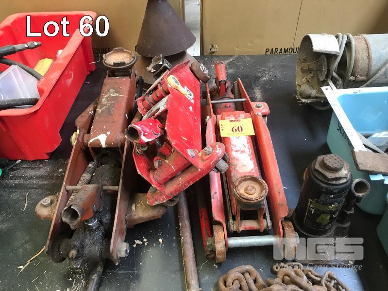 3 x GARAGE JACKS, HYDRAULIC, BOTTLE JACK & FUNNELS