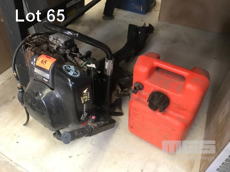 BRIGGS & STRATTON OUTBOARD MOTOR, 5HP, 4 STROKE & MARINE FUEL CAN
