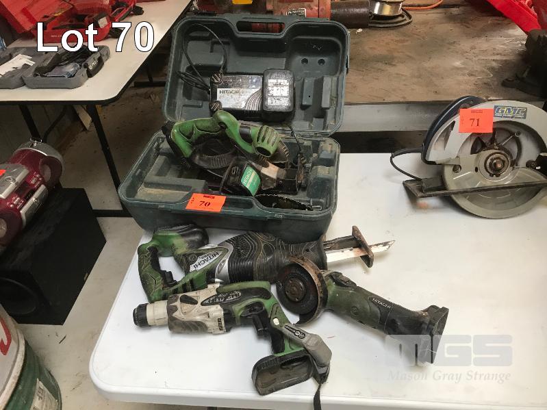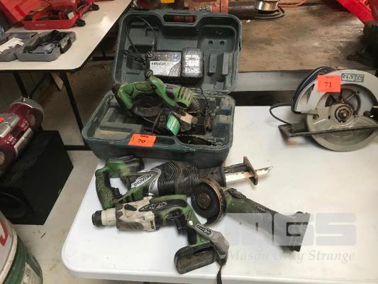 HITACHI CORDLESS TOOL KIT COMPRISING CIRCULAR SAW, RECIPROCATING SAW, HAMMER DRILL & ANGLE GRINDER, 1 x BATTERY & CHARGER