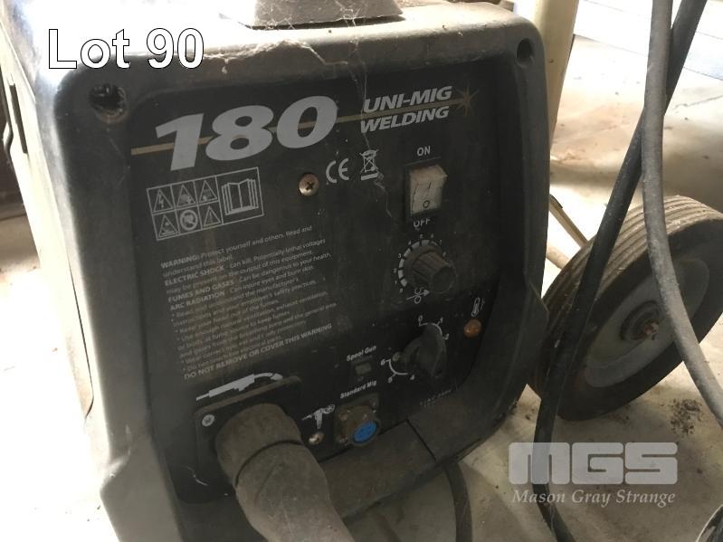 PORTABLE MIG WELDER, UNIMIG MOD: 180 240V, SINGLE PHASE ON TROLLEY