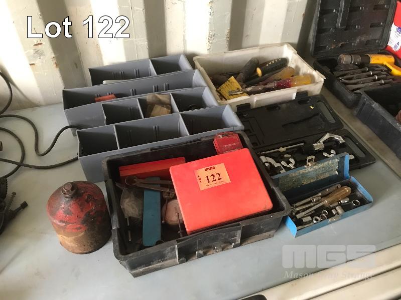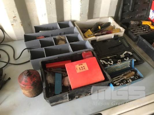 ASSORTED TOOLS & SOCKET SET, 2 x TUBS & PLASTIC TRAYS
