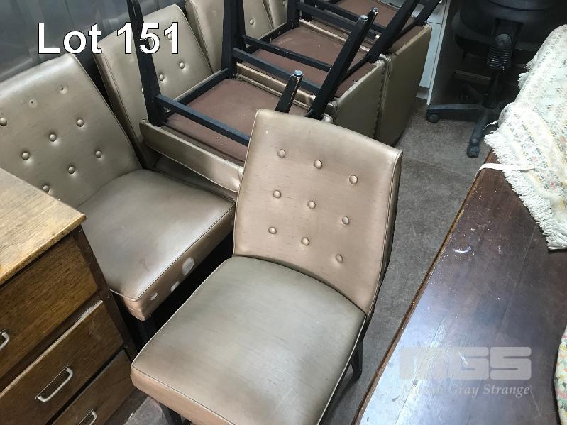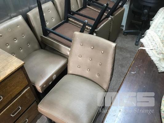 SET 8 TH BROWN GOLD VINYL DINING CHAIRS, RE-UPHOLSTERING REQUIRED