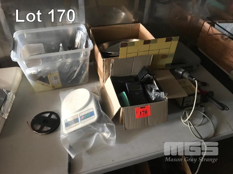 LED STRIP LIGHTING ROLLS, NEW, SOLDERING STATIONS, SCALES, BRACKETS, ETC