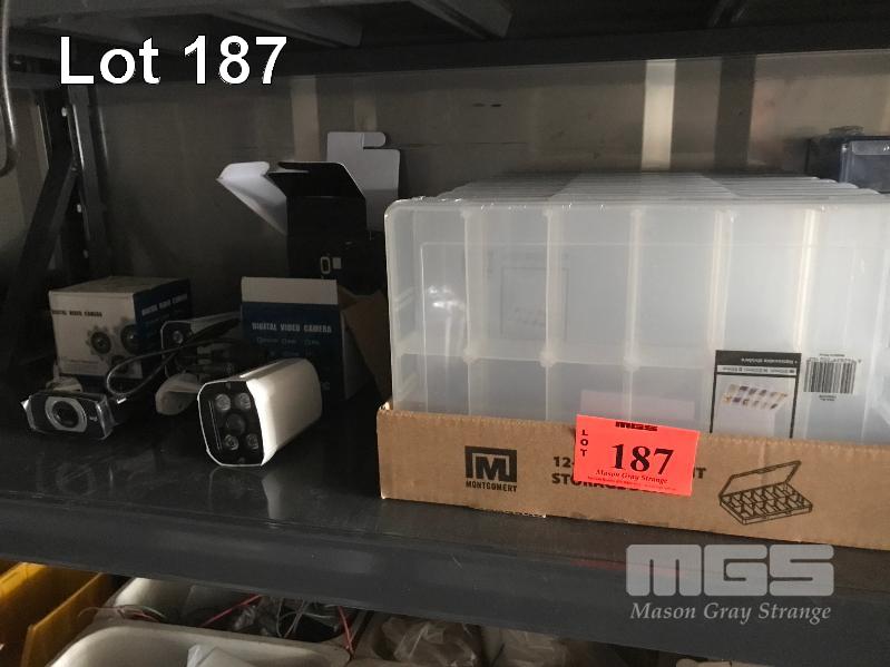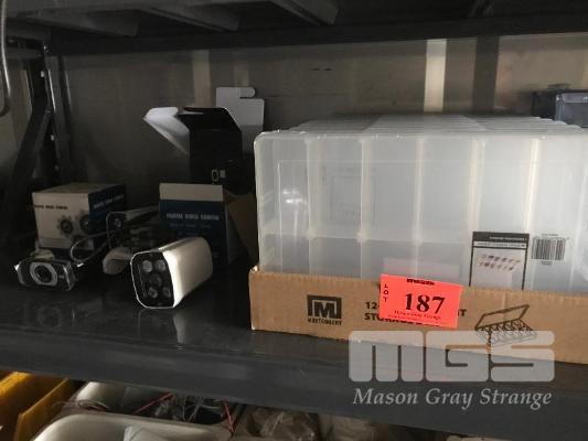 ASSORTED DIGITAL SURVEILLANCE CAMERAS, GRAB KIT BOXES & SMALL PARTS DRAWERS