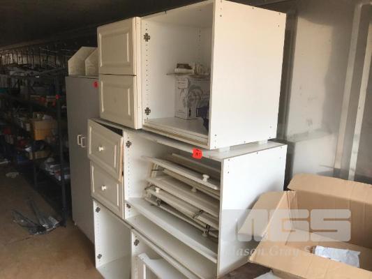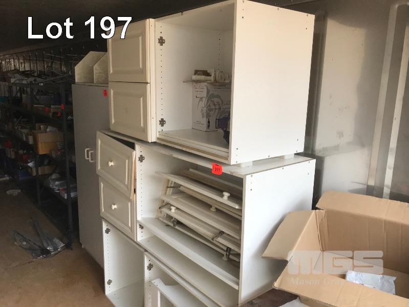WHITE KITCHEN CABINETRY & CARCASSES, CABINET DOORS, OVERHEADS, SHELF UNITS & BENCHTOPS