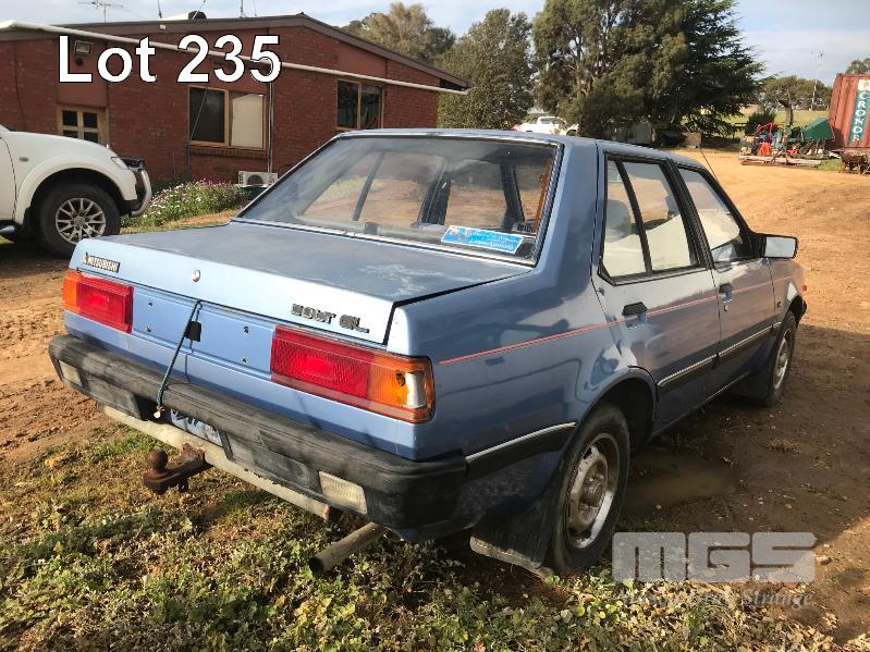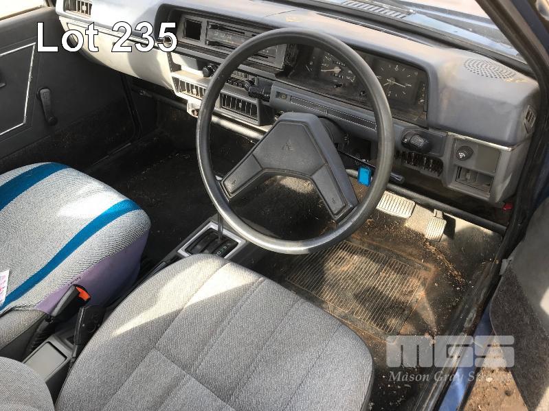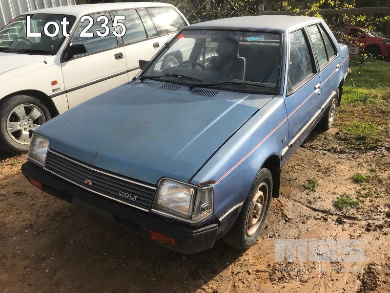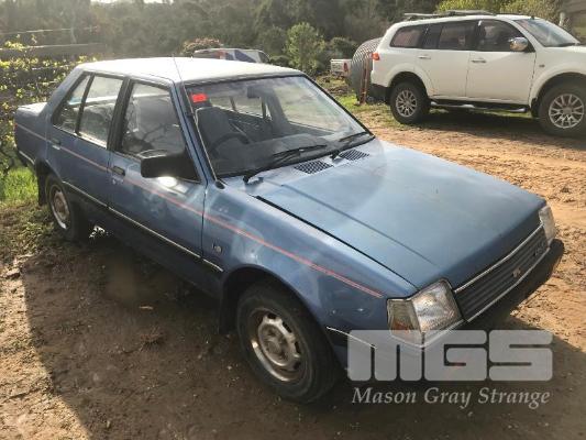 1985 MITSUBISH COLT GL SEDAN REG: NO PLATES VIN: RC6H41SKID005472 ODO: 142,531kms INDICATED 1.6 LITRE, 3 SPEED AUTOMATIC TRANSMISSION, PETROL, BLUE DUCO, 4 DOORS, AIR CON, POWER STEERING, SPARE WHEEL (WITH 1 KEY/S)