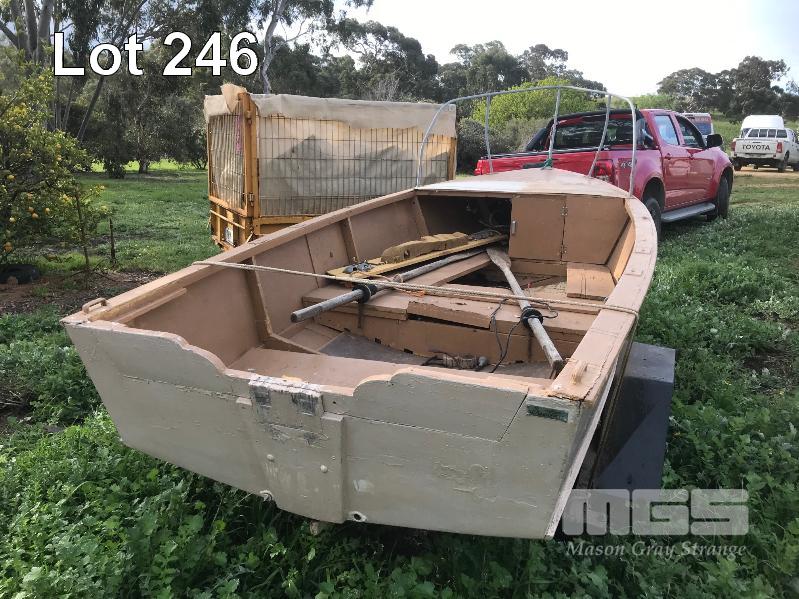 TIMBER DINGHY, 12' ON STEEL SINGLE AXLE TRAILER