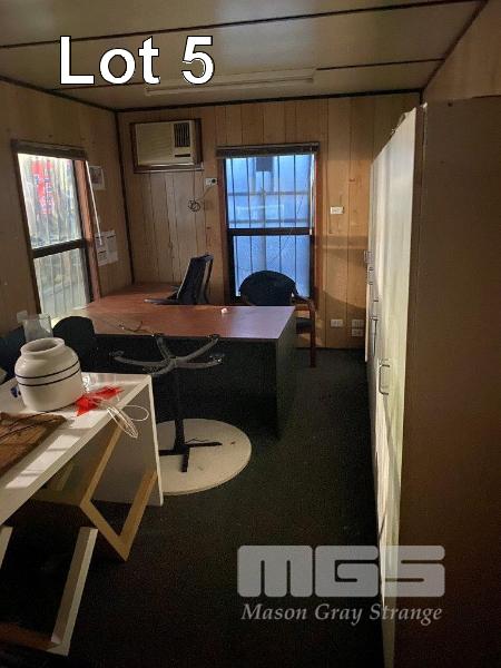 MASH BUILDING: THE BUILDING IS COMPRISED OF 3 x SEPARATE UNITS (2 @ 12 x 3.6m & 1 @ 12 x 3m) BOLTED TOGETHER. COMPRISING 3 x OFFICES, FOYER, OPEN PLAN OFFICE, BOARDROOM, KITCHENETTE, 2 x TOILETS & SERVER ROOM, 4 x AIR CONDITIONERS, CARPET THROUGHOUT WITH VINYL IN TOILETS & KITCHEN (SOLD IN SITU, LOCATED AT KILBURN, INSPECTION ONLY VIA AN APPOINTMENT WITH MGS, CONTACT JOHN OR ANDREW)