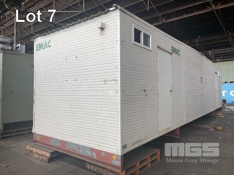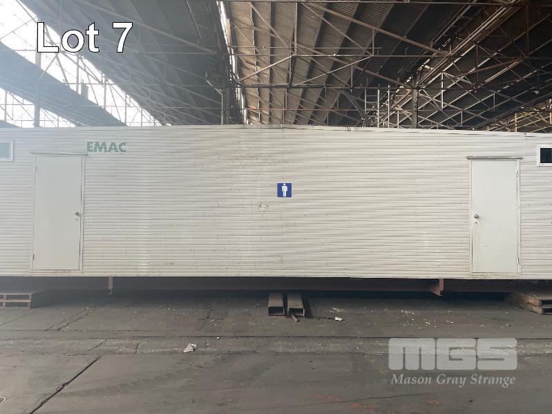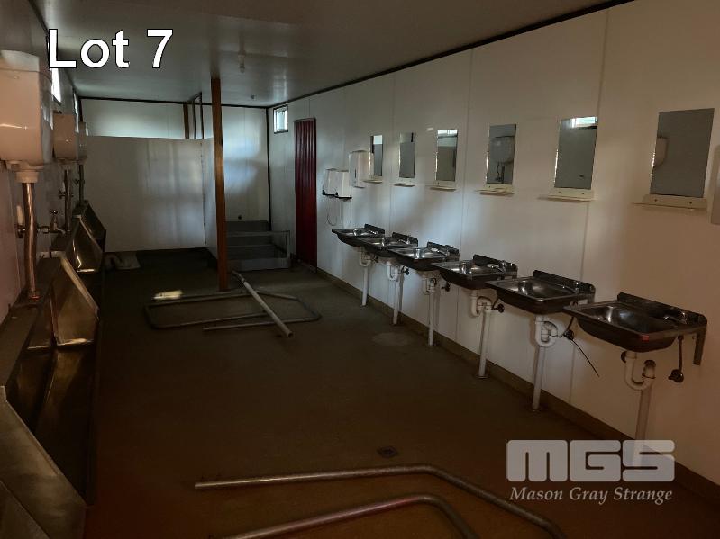 ABLUTION BLOCK 2: TRANSPORTABLE ABLUTION BLOCK 12 x 3m (MALE) 2 x ACCESS DOORS, 4 x CUBICLES, LARGE URINAL & 6 x HAND BASINS, GALVANISED ACCESS STAIRS WITH HAND RAILS, WHITE COLOURBOND ALL WASTEWATER IS CONNECTED VIA UNDERFLOOR PLUMBING TO A SINGLE SEWER OUTLET (SOLD IN SITU, LOCATED AT KILBURN, INSPECTION ONLY VIA AN APPOINTMENT WITH MGS, CONTACT JOHN OR ANDREW)