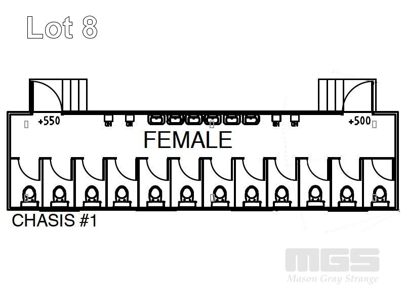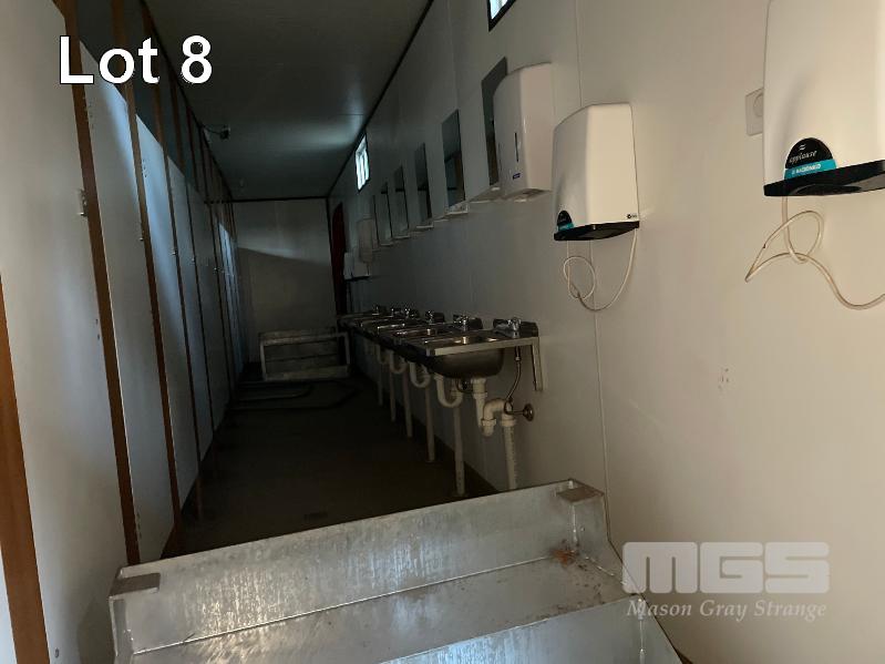 ABLUTION BLOCK 1: TRANSPORTABLE ABLUTION BLOCK 12 x 3m (FEMALE), 2 x ACCESS DOORS, 12 x CUBICLES & 6 x HAND BASINS, GALVANISED ACCESS STAIRS WITH HAND RAILS, GREEN COLOURBOND ALL WASTEWATER IS CONNECTED VIA UNDERFLOOR PLUMBING TO A SINGLE SEWER OUTLET (SOLD IN SITU, LOCATED AT KILBURN, INSPECTION ONLY VIA AN APPOINTMENT WITH MGS, CONTACT JOHN OR ANDREW)