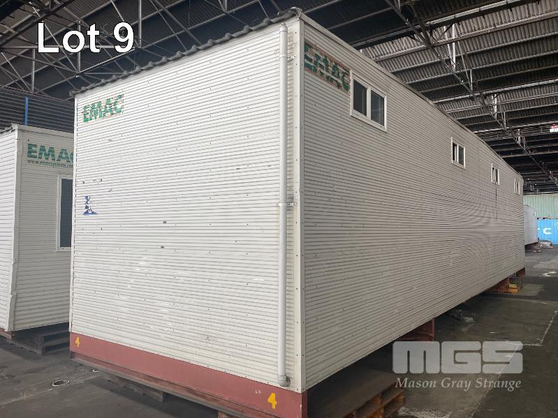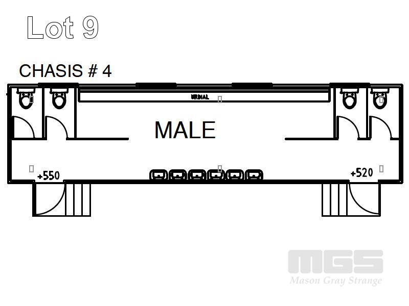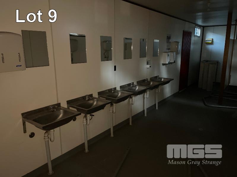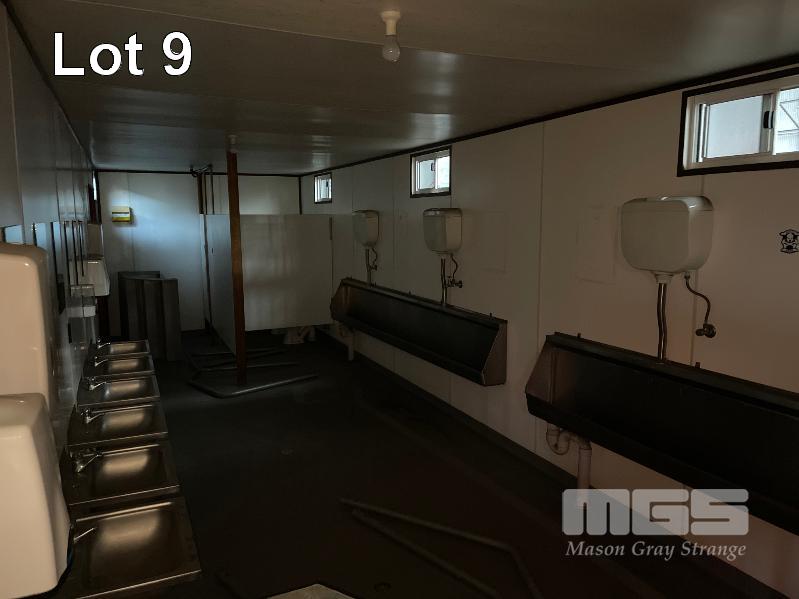 ABLUTION BLOCK 4: TRANSPORTABLE ABLUTION BLOCK 12 x 3m (MALE) 2 x ACCESS DOORS, 4 x CUBICLES, LARGE URINAL & 6 x HAND BASINS, GALVANISED ACCESS STAIRS WITH HAND RAILS, WHITE COLOURBOND ALL WASTEWATER IS CONNECTED VIA UNDERFLOOR PLUMBING TO A SINGLE SEWER OUTLET (SOLD IN SITU, LOCATED AT KILBURN, INSPECTION ONLY VIA AN APPOINTMENT WITH MGS, CONTACT JOHN OR ANDREW)