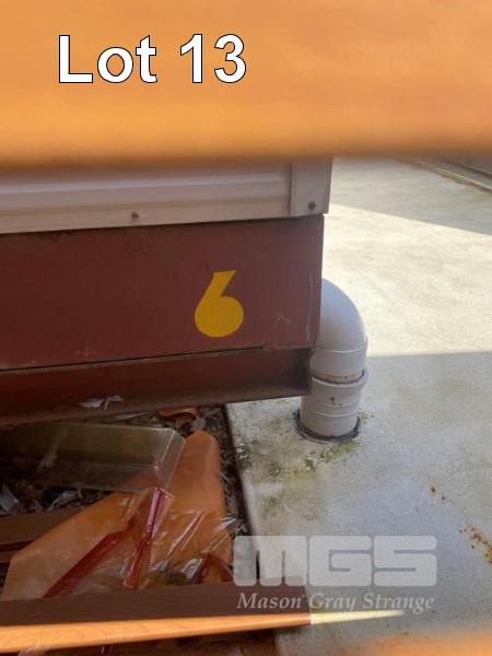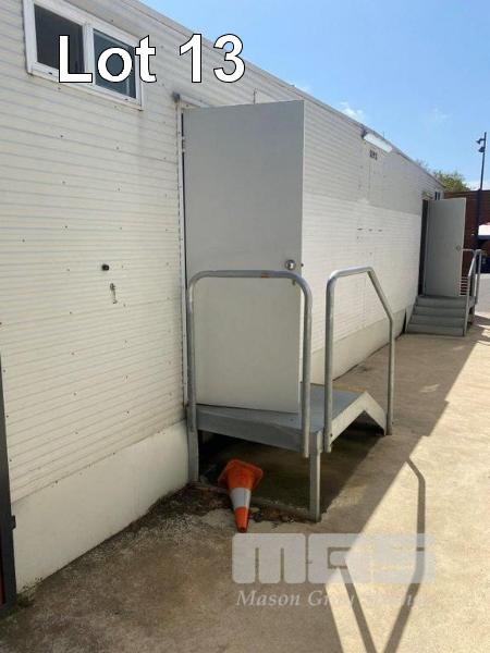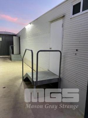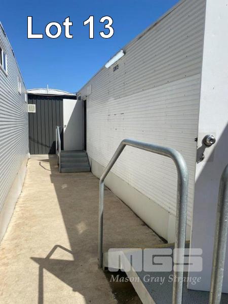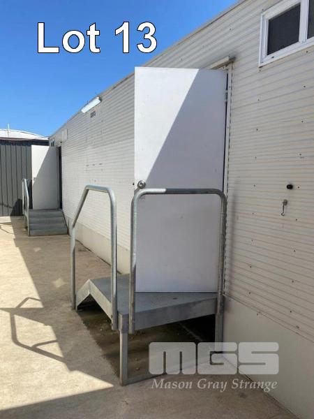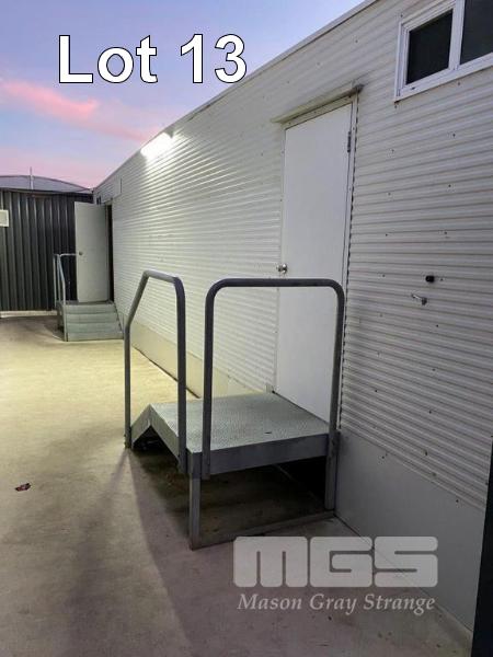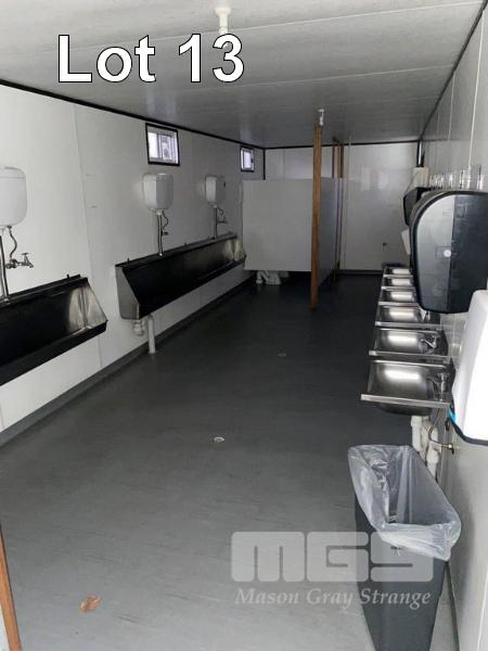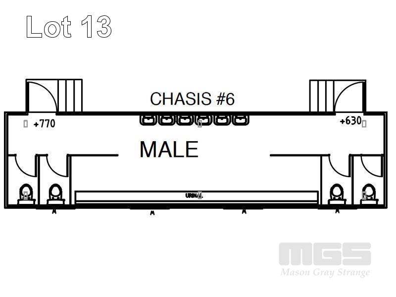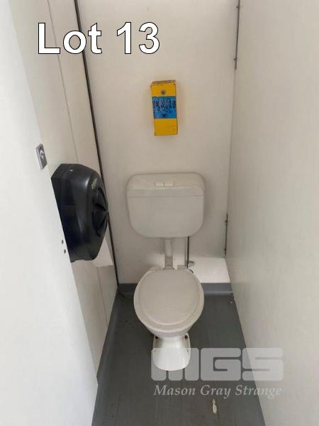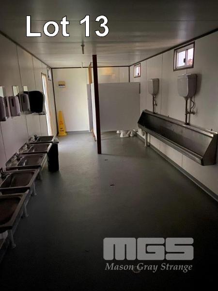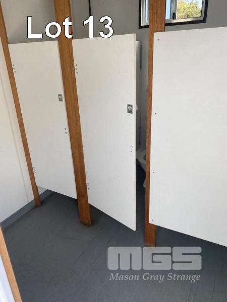 ABLUTION BLOCK 6: TRANSPORTABLE ABLUTION BLOCK 12 x 3m (MALE) 2 x ACCESS DOORS, 4 x CUBICLES, LARGE URINAL & 6 x HAND BASINS, GALVANISED ACCESS STAIRS WITH HAND RAILS, WHITE COLOURBOND ALL WASTEWATER IS CONNECTED VIA UNDERFLOOR PLUMBING TO A SINGLE SEWER OUTLET (SOLD IN SITU, LOCATED AT ADELAIDE OVAL, INSPECTION ONLY VIA AN APPOINTMENT WITH MGS, CONTACT JOHN OR ANDREW) COLLECTION AFTER 31ST OCTOBER