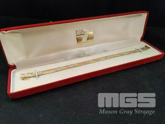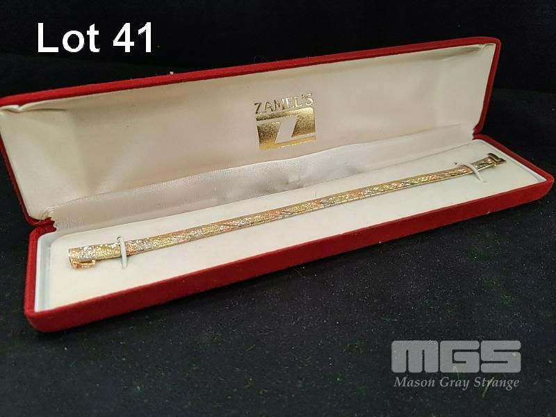 MULTI COLOURED GOLD BRACELET, MARKED 14, MAKERS MARK WORN OFF, 14.15g