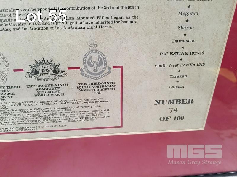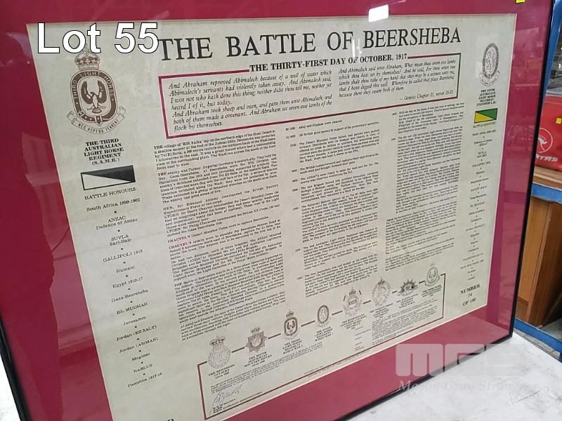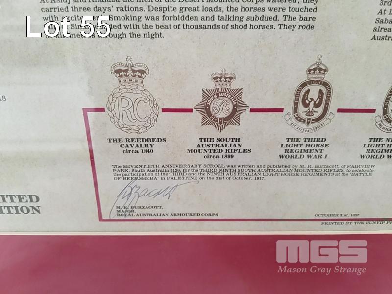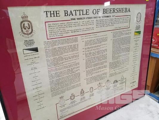 THE BATTLE OF BEERSHEBA 70TH ANNIVERSARY SCROLL, FRAMED, "NUMBER 74 OF 100"