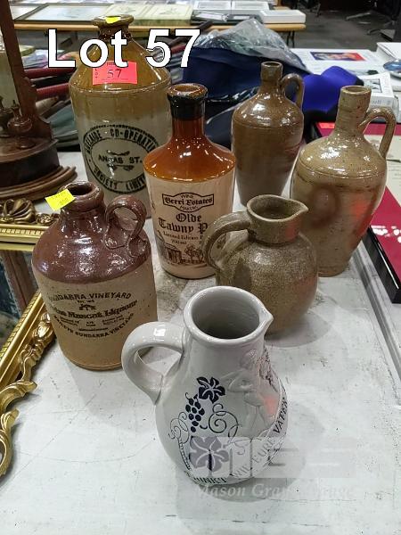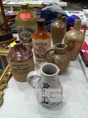 6 x VINTAGE STONEWARE BOTTLES & JUGS AND VINTAGE GERMAN CARAFE