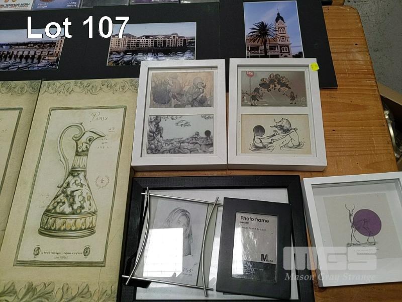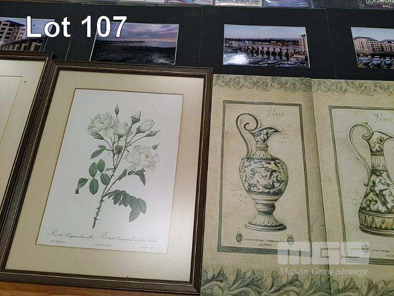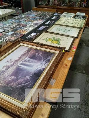 COLLECTION OF FRAMED PRINTS, STRETCHED CANVAS PRINTS, PHOTO FRAMES AND PHOTOGRAPHS OF GLENELG SOUTH AUSTRALIA. INCLUDES PRINT OF PAINTING BY LOUIS BUVELOT "WANNON FALLS 1872" (1 x TABLE)
