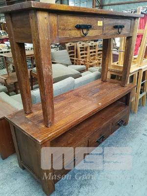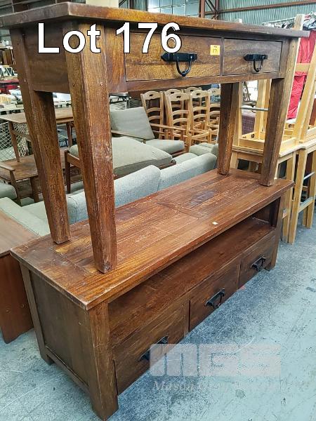 3-DRAWER TIMBER TV UNIT AND MATCHING 2-DRAWER SIDE TABLE