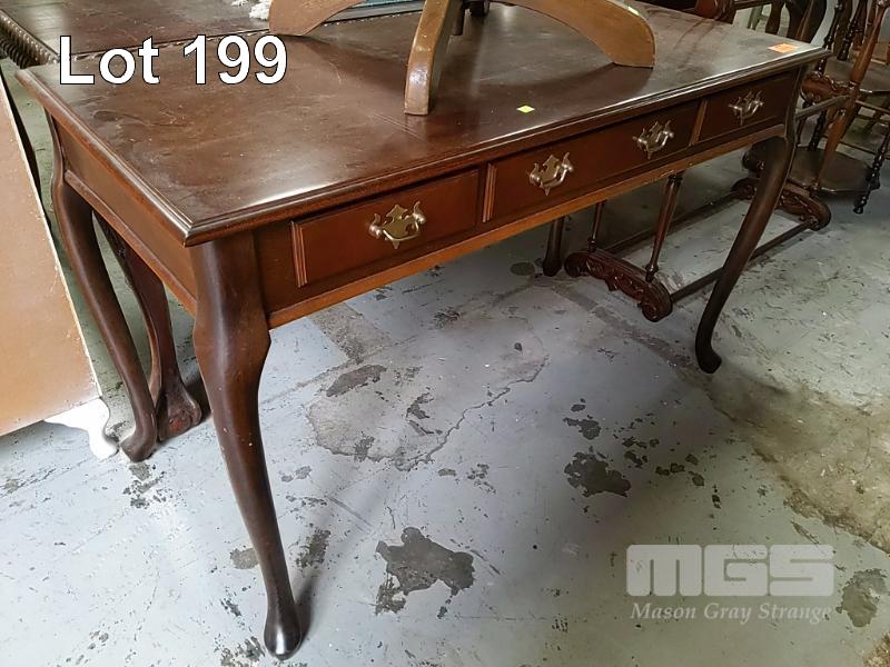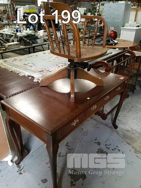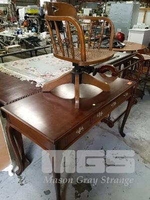 3-DRAWER CABRIOLE LEG MAHOGANY DESK WITH ANTIQUE CAPTAIN SWIVEL CHAIR