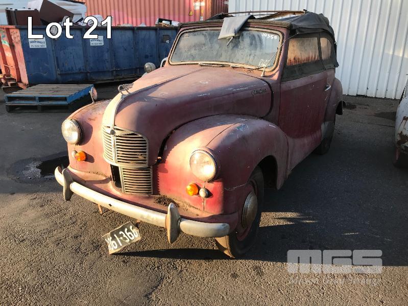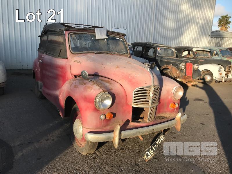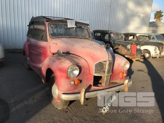AUSTIN OF ENGLAND A40 SOFT TOP TOURER REG: NO PLATES (EXPIRED) ODO: 24,026 MILES INDICATED 4 CYLINDER, 4 SPEED MANUAL, PETROL, BURGANDY, 4 DOORS, 5 SEAT, SPARE WHEEL, ORIGINAL BARN FIND CONDITION KEPT UNDER COVER PREVIOUSLY FAIR CONDITION FOR AGE RESTORATION REQUIRED (NO PAPERS, NO OWNER'S MANUAL, NO SERVICE BOOKS)