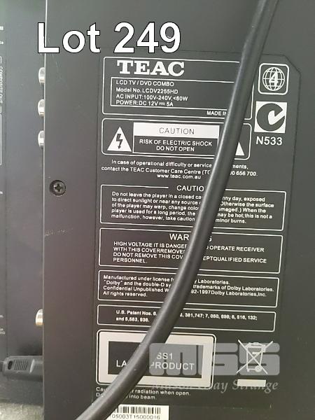 2 x TEAC LCD TV/DVD COMBO 21.6" TELEVISIONS (LCDV2255HD) AND SINGLE REMOTE