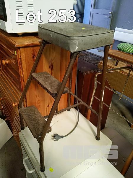 2 x 3-DRAWER BEDSIDE TABLES, 4-DRAWER BEDSIDE TABLE, 3-TIER MOBILE RACK, 5-TIER WIRE RACK AND VINTAGE STEP-STOOL.