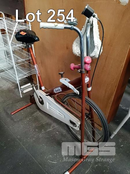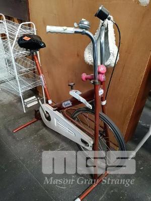VINTAGE "SLENDERLINE" EXERCISE BIKE AND 2 x 5KG BARBELLS