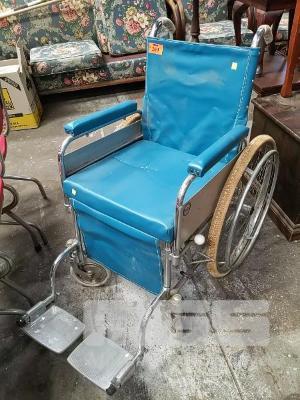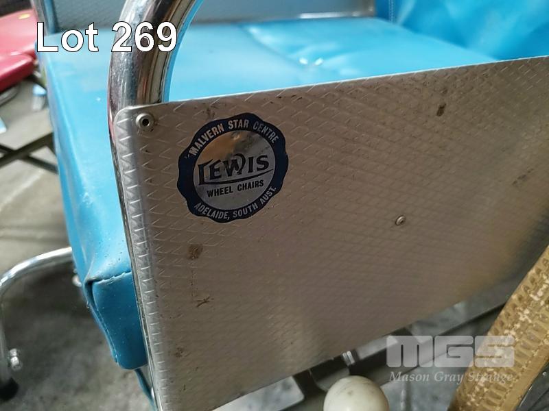 VINTAGE LEWIS ALUMINIUM WHEELCHAIR WITH FOOTPLATES