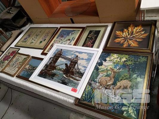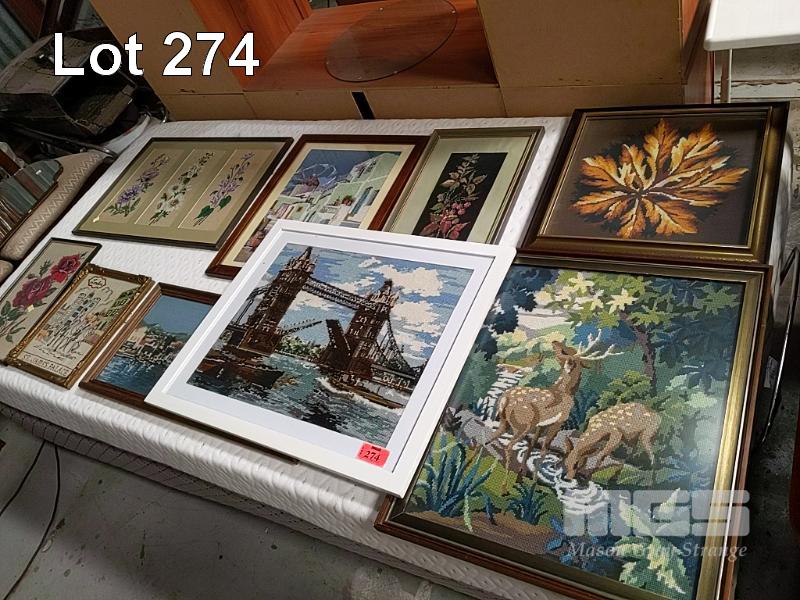 9 x FRAMED CROSS STITCH TAPESTRIES