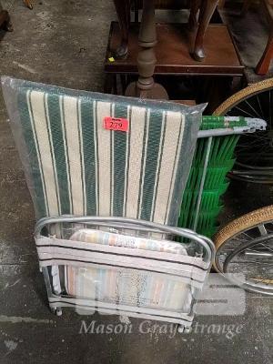 CLASSIC PLASTIC GREEN FOLDING BANANA LOUNGE, PVC OUTDOOR CHAIR CUSHIONS AND FOLDING BEACH BACKREST