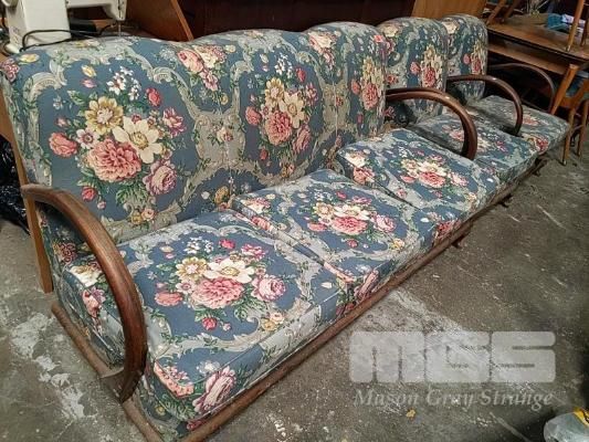 VINTAGE FLORAL FABRIC BENTWOOD FRAMED LOUNGE SUITE COMPRISING 3-SEAT LOUNGE AND 2 x ARMCHAIRS