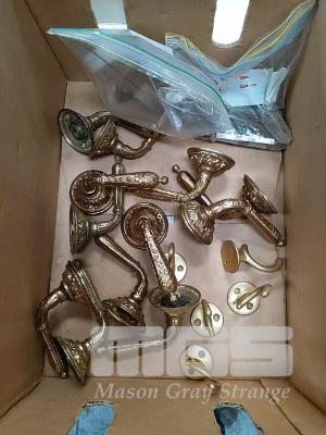 6 x PAIRS OF ORNATE BRASS DOOR LEVERS AND COAT HOOKS