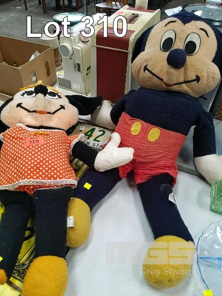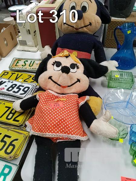 WALT DISNEY'S MICKEY MOUSE & AND MINNIE MOUSE SOUVENIR STUFFED TOYS. AGE UNKNOWN POSSIBLY CIRCA 1970s