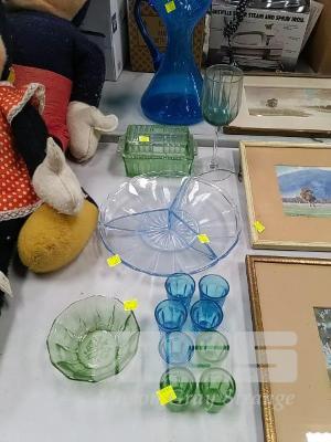 COLLECTION OF COLOURED GLASS. INCLUDES URANIUM GLASS TUMBLERS