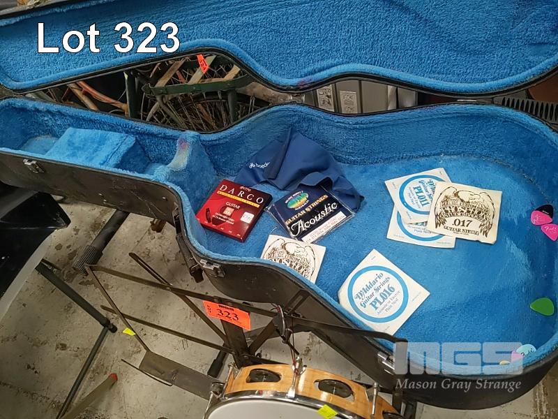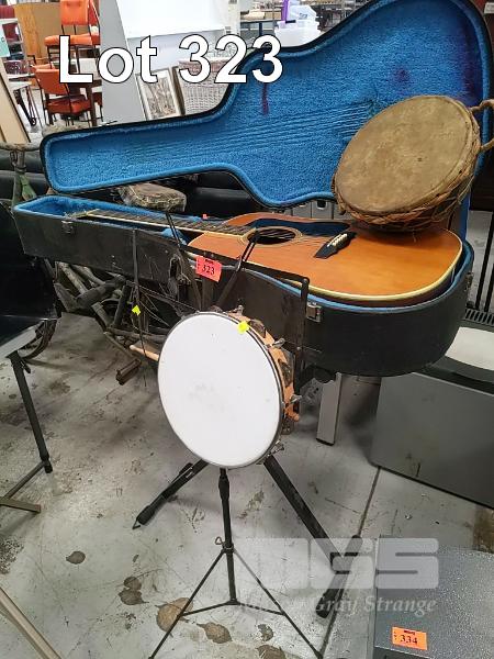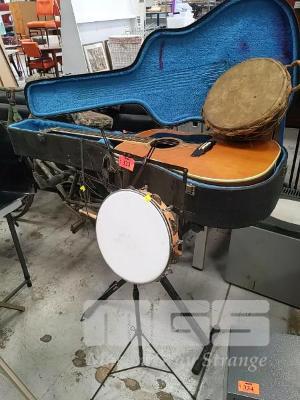 IBANEZ GUITAR "MODEL NO. 2846" IN CASE, TAMBOURINE, INDIAN DRUM, DRUMSTICK, KEYBOARD STAND AND MUSIC STAND