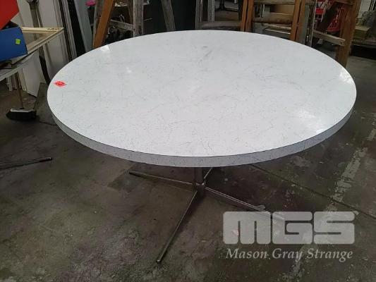 MID CENTURY ROUND LAMINATED KITCHEN TABLE